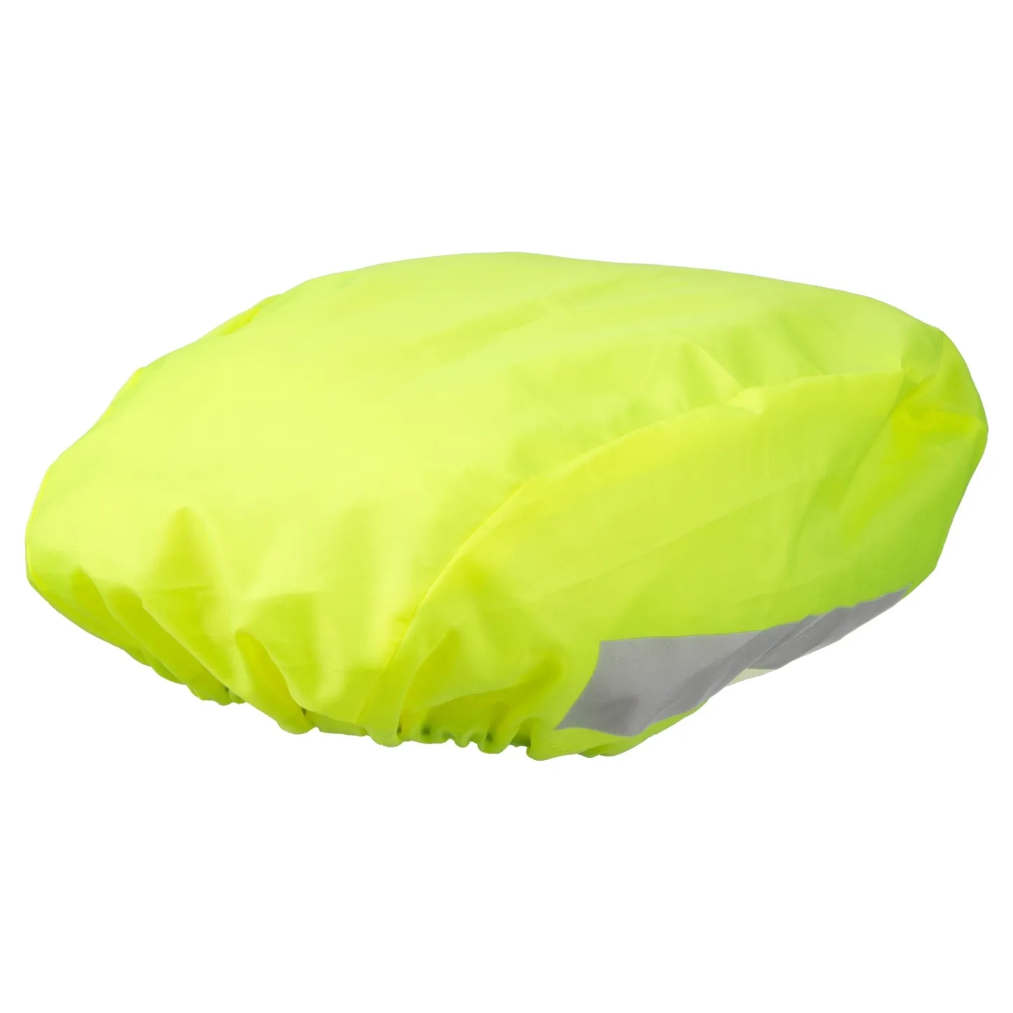 Polyester-Fahrradhelmbezug mit Kordelzugverschluss auf der Innenseite. Reflektierend und wasserabweisend.